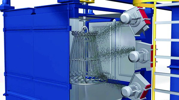 在对零件进行抛丸清理时,能使零件在抛射流中不断更换被清表面,以达到均匀抛丸要求的设施称为抛丸设备,或称抛丸机械。因被清工件千变万化,所以抛丸设备亦多种多样。某一规格的抛丸设备,只适用于一定范围内零件清理用。而专用设备,则适用于某一种零件。